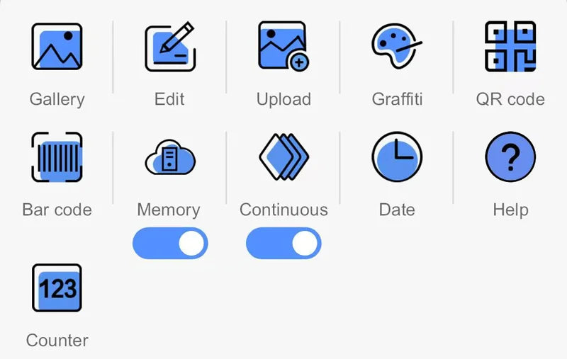 We offer simple and diverse software. You can upload QR codes, counter, date,barcodes, logos, pictures, text and other elements for printing.